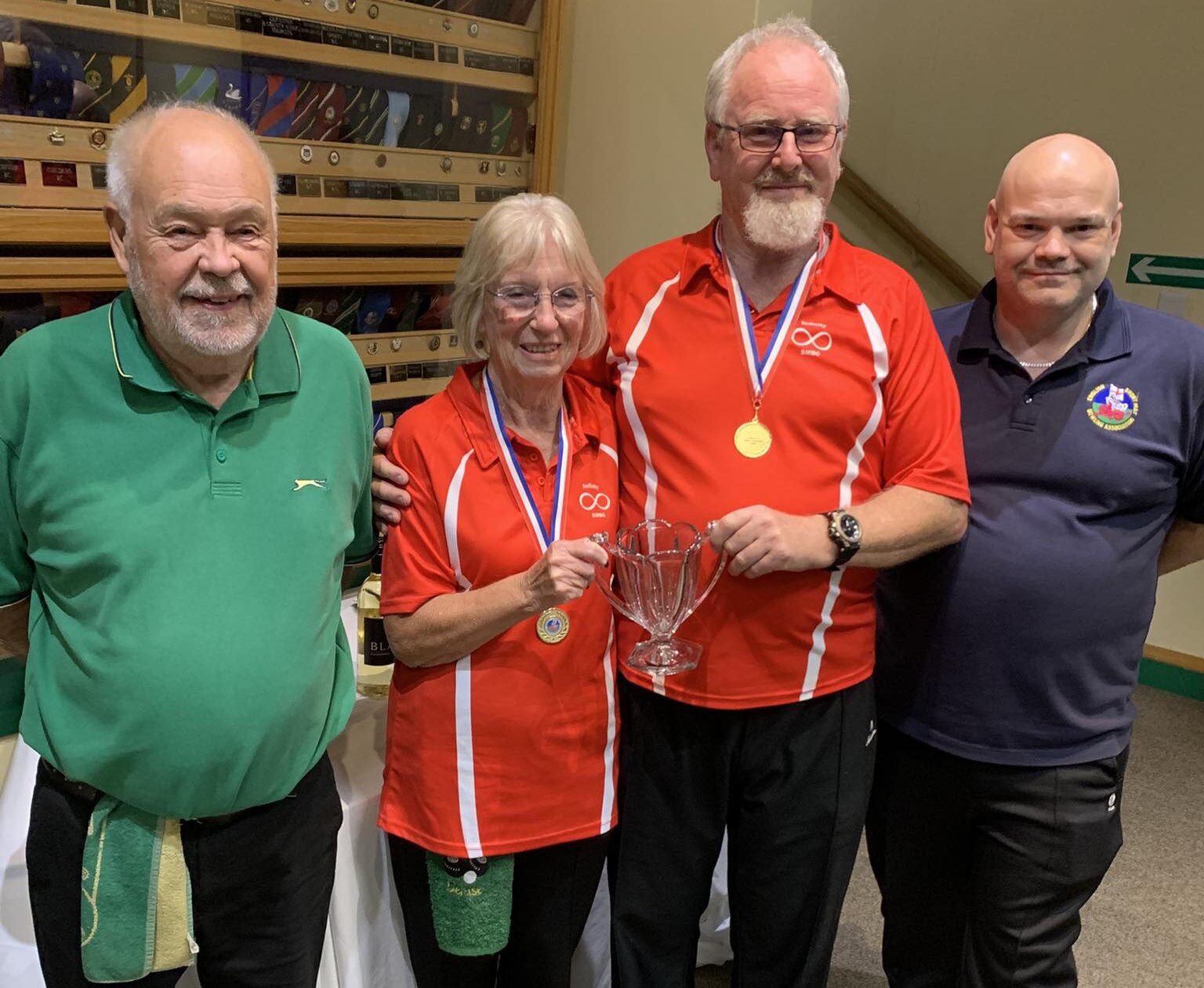 Denise Merritt and Brian Mills secured the trophy for Pairs competition with a brilliant run of wins culminating in them beating a a very strong team of Tommy Wilkins and Jeff Streeter in the final.
